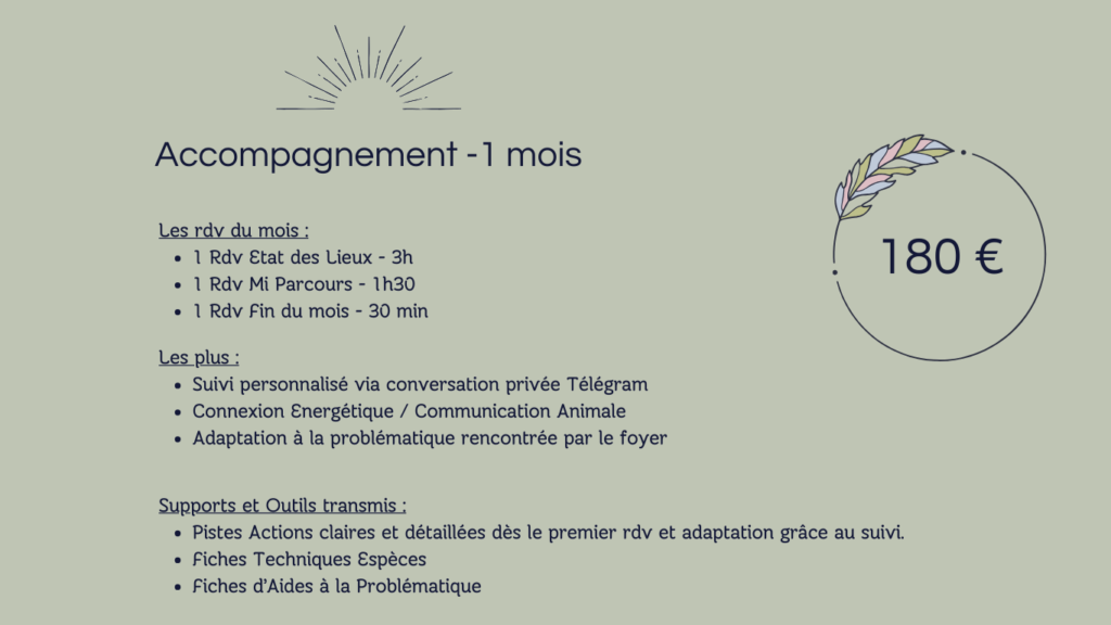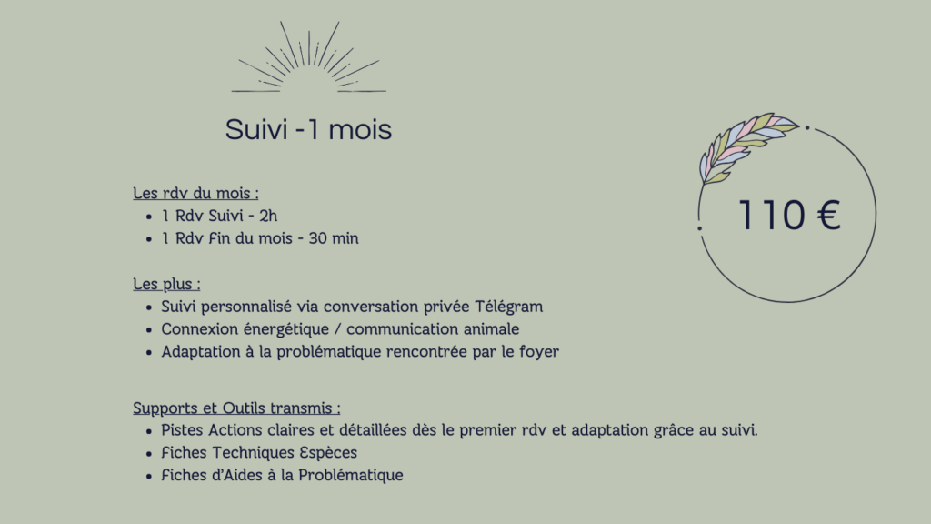 La poursuite ou non dépend de la problématique rencontrée et des êtres accompagnés. Je ne peux vous annoncer en avance s’il faudra des mois de suivis ou non.